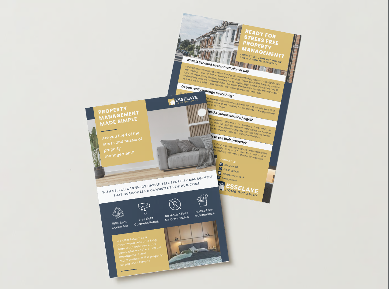 I design marketing materials that help property professionals make their mark. From business cards to attention-grabbing flyers and leaflets, I can create designs that showcase your brand at its best and help you connect with your target audience.
